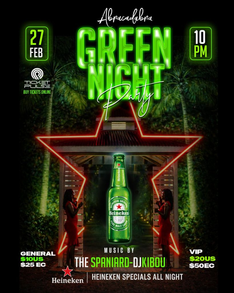 On February 27, we glow GREEN! Another year. Another legendary Green Night with The Anjo Experience! Heineken takes over with specials all night. Music by The Spaniard x DJ Kibou buy tickets previous post RUDE BOY Party next post Fuego Friday Leave a Reply Cancel replyYour email address will not be published. Required fields are marked *Comment * Name * Email * Website Save my name, email, and website in this browser for the next time I comment.